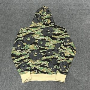 Stand out instantly with our all-over camo printed full-zip hoodie.