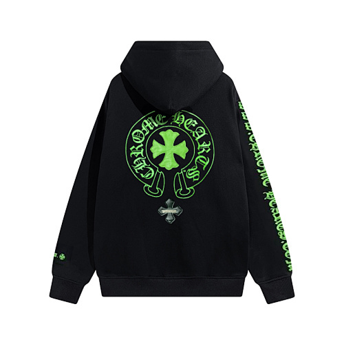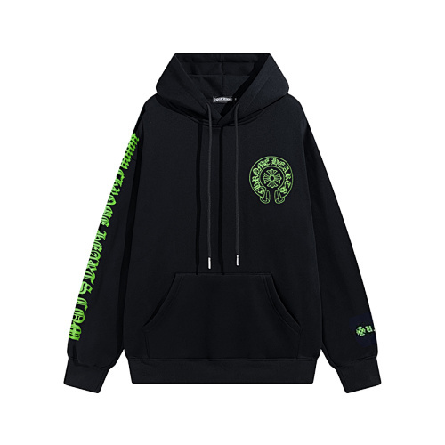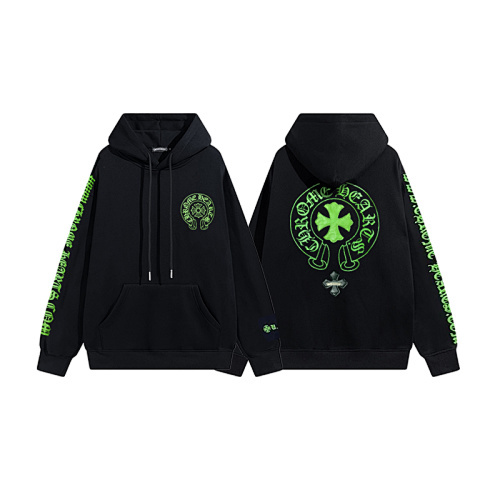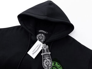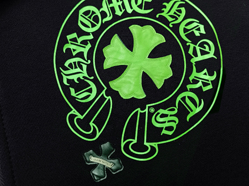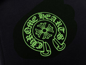 This isn’t just a hoodie—it’s a bold statement piece that embodies Chrome Hearts’ iconic gothic streetwear aesthetic. Featuring neon green horseshoe and cross graphics, signature Old English text, and a sleek black base, it’s equal parts edgy, luxurious, and instantly recognizable.