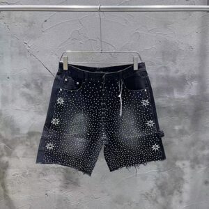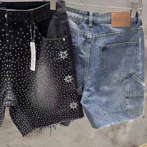 These aren’t just denim shorts—they’re the ultimate statement piece that blends rugged workwear style with eye-catching glamour. Featuring a classic carpenter silhouette, vintage-washed denim, and all-over rhinestone embellishments, they’re designed to make you stand out while keeping that signature streetwear edge.